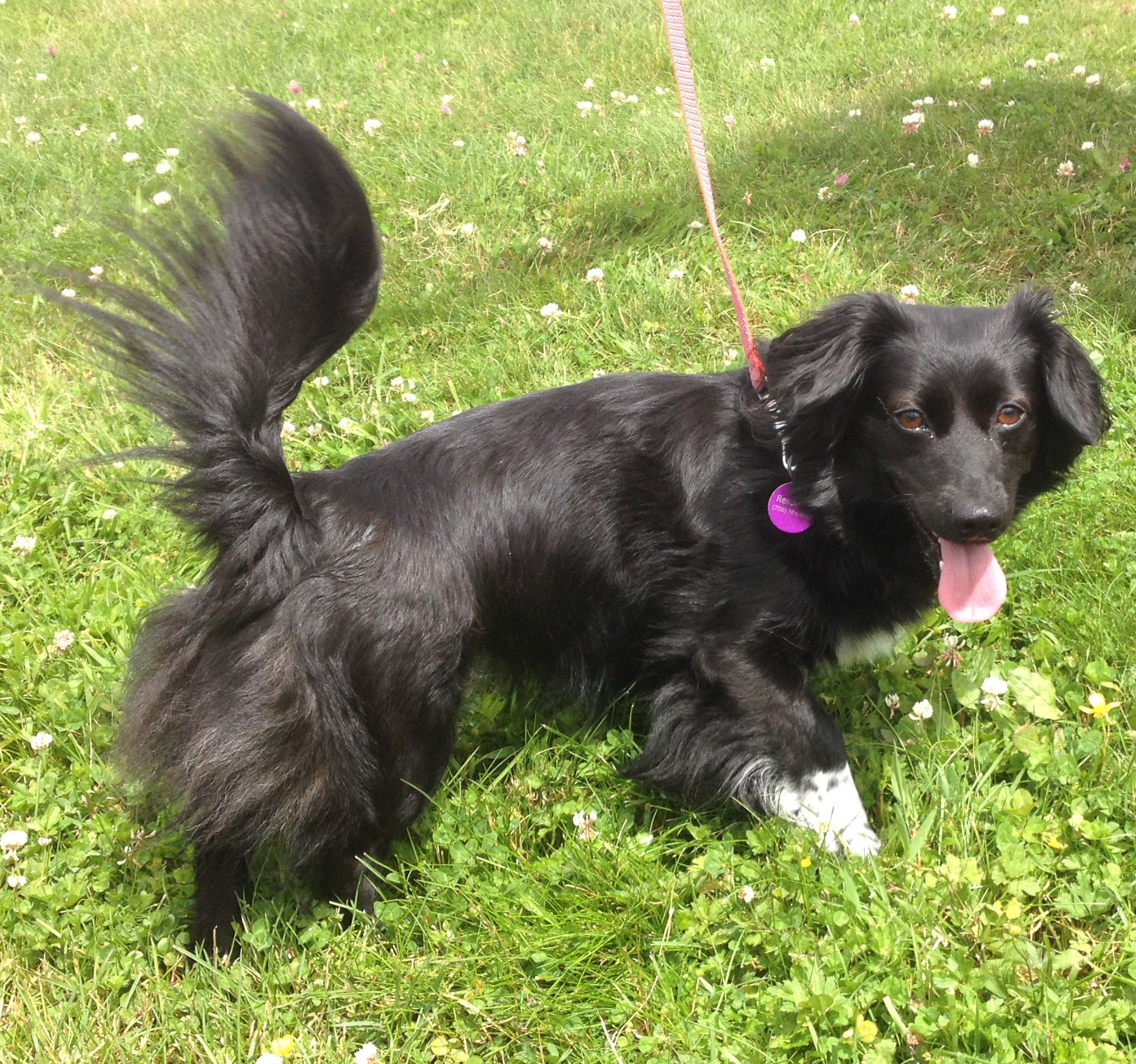 Cutie is a 2 1/2 year old female small mix. She is house trained and good with kids and adult cats. This loving pup is affectionate and enjoys time in your lap. If you would like to learn more or adopt Cutie, please fill out an adoption application.